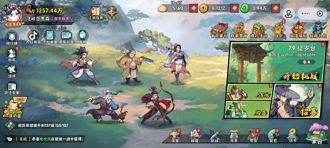 5分多琵琶女,已经有了前五个秘籍,可以硬抗很久,期间破军(不是卓)会死一次,立马复活推怪,可以拖到boss。