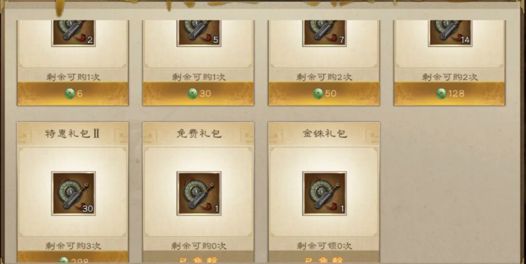 方案二:神兵0次,红装0次,星符2次,共需要112抽,减去3次免费获得的27抽需要氪金85抽。平均每次氪金28-29抽,第一轮6+30+2*50元全部买完是136元21抽,第二轮多购买一个128礼包是264元35抽,第三轮6+30+50+128礼包每种先买一个是214元28抽,共花费614元获得84抽。第三轮根据实际情况购买,大概是614元获得2轮星符。
