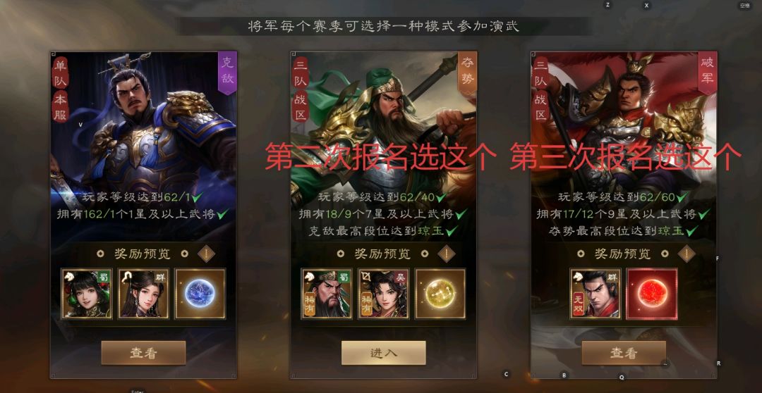 演武一定要选最高的级别报名,奖励完全是碾压,等几天也要报名最高等级的