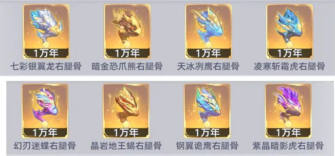 而这8个魂骨全部都是输出相关的作用,且前4个依然和固定的体系有衍生效果,所以我们的选择依然有两个思路,大家是抱着一个体系走到黑还是选择泛用性更广的魂骨可以自行思考,反正维一个人依然比较倾向于选择“刚翼鹰”,当然打短图爆发的也可以选择“紫晶虎”,其中维一个人选的是刚翼鹰,另外特别提醒这两个魂骨的基础伤害并不算很高(特别是紫晶虎),其原因是在于它们在5万年且4星后会有双倍伤害的提升,因此这两个魂骨在5万年且4星之前,其伤害斗不是完全体,大家需要注意。