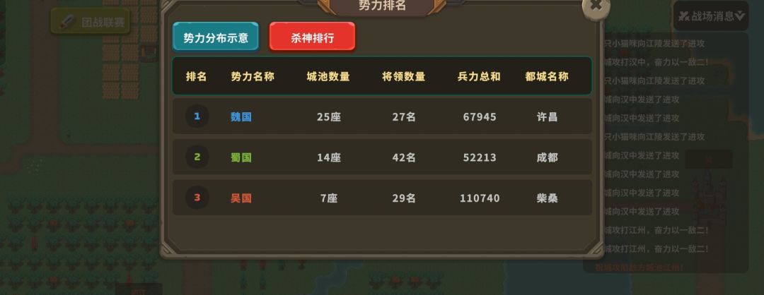 接着不出半小时, 魏国爆发出来的大军横扫全场,直接打得蜀军节节败退,魏国占领整片地图。 晚上九点,又经历几轮大战,魏国领土保持优势。