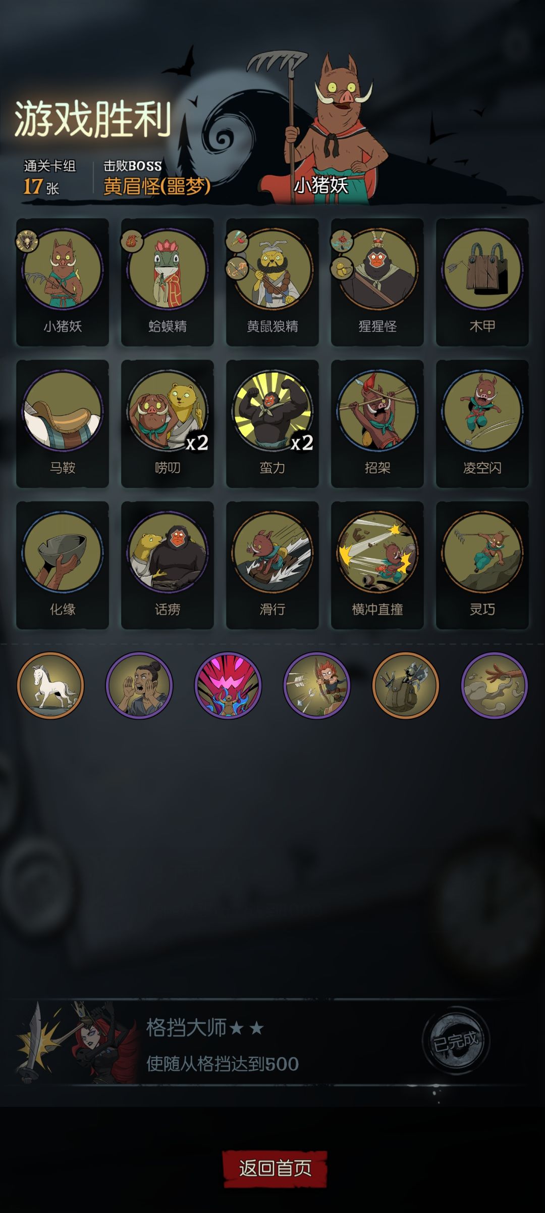 大致就是无限给黄鼠狼叠攻击 然后一直触发抽卡 再通过神卡招架 祖先护符来减卡到0费 猩猩的三围+1很适合触发加格挡的装备 再给黄鼠狼穿那个友方每+3格挡自己+1攻的 直接卡到手机受不了