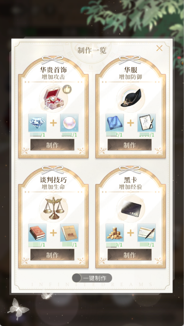 制作材料,可在本次活动中永久提高入梦师的基础属性。