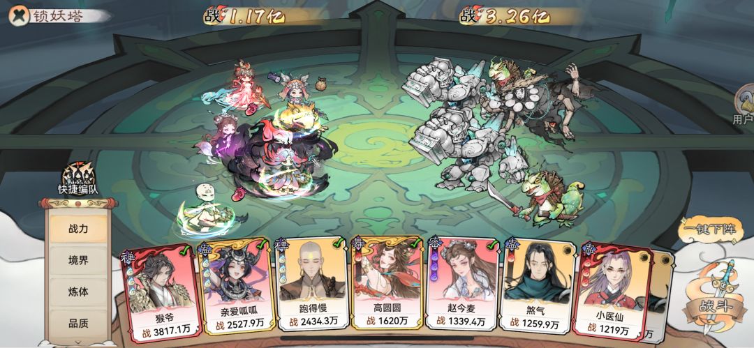 3.阿璃单c有点呆,特别是目前没有常规坦克的时候,所以在锁妖塔3000层之前,还是建议把东西都给至尊宝,用常规阵容先爬完前3000层,后续资源够了再去考虑转邪修蛊爬塔。