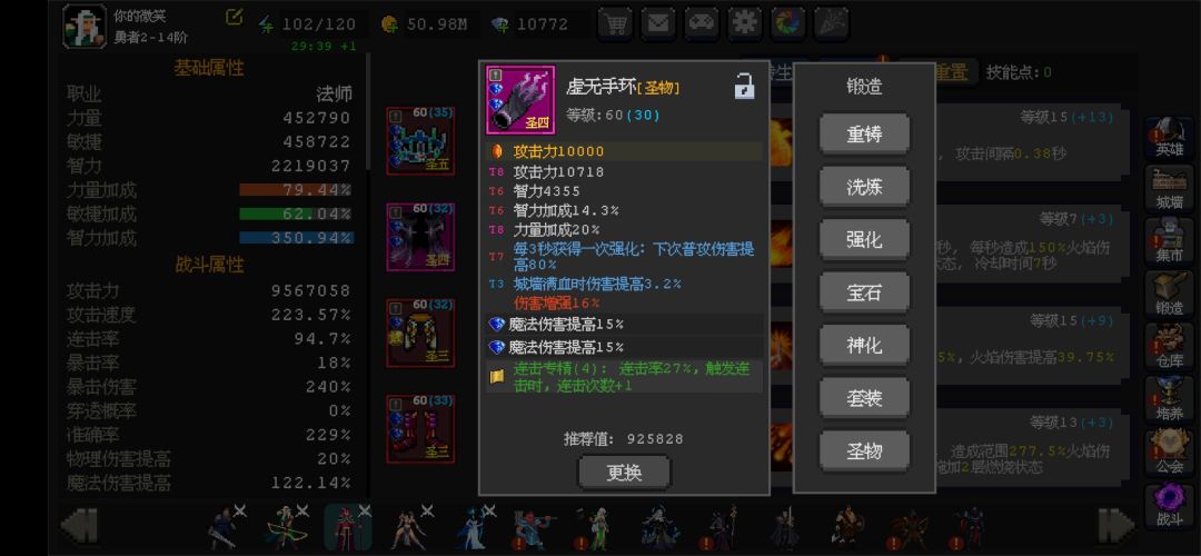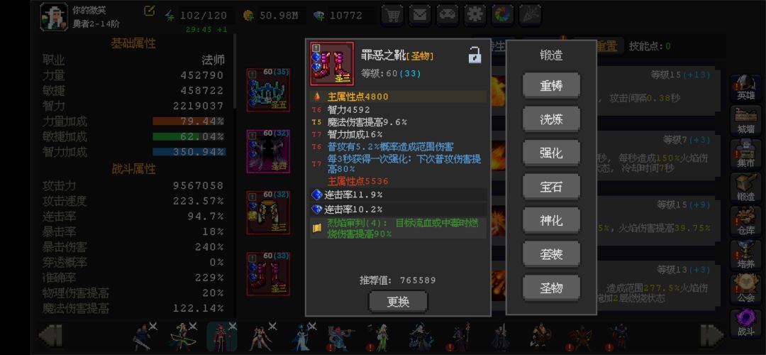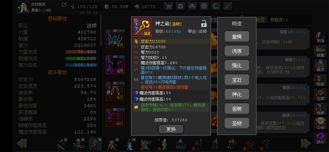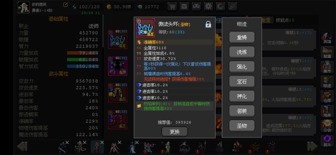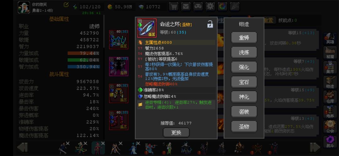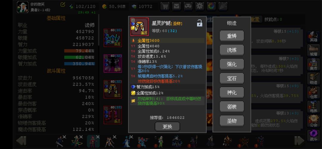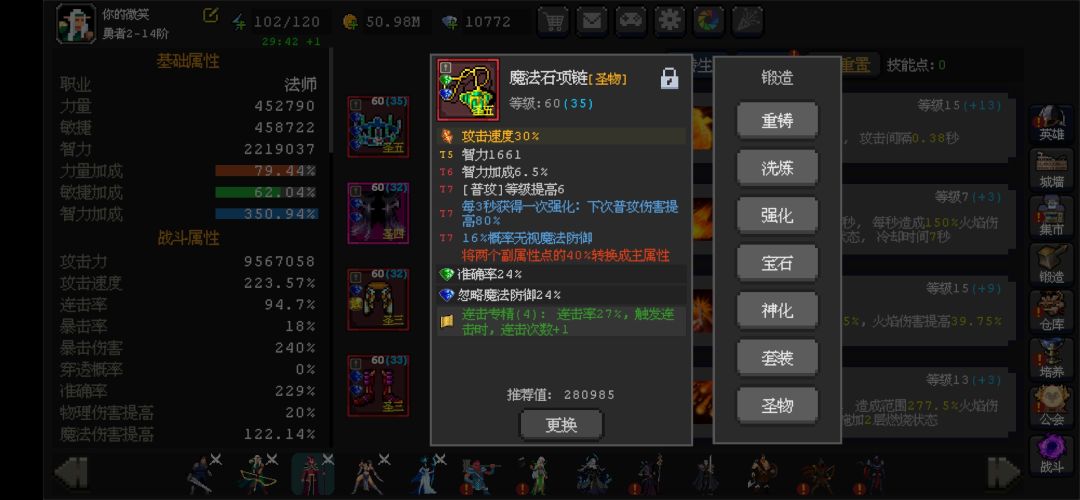 法师面板 最近开始换装备了 感觉伤害开始瓶颈,想办法在装备上找攻速 玩的连击审判 禁大