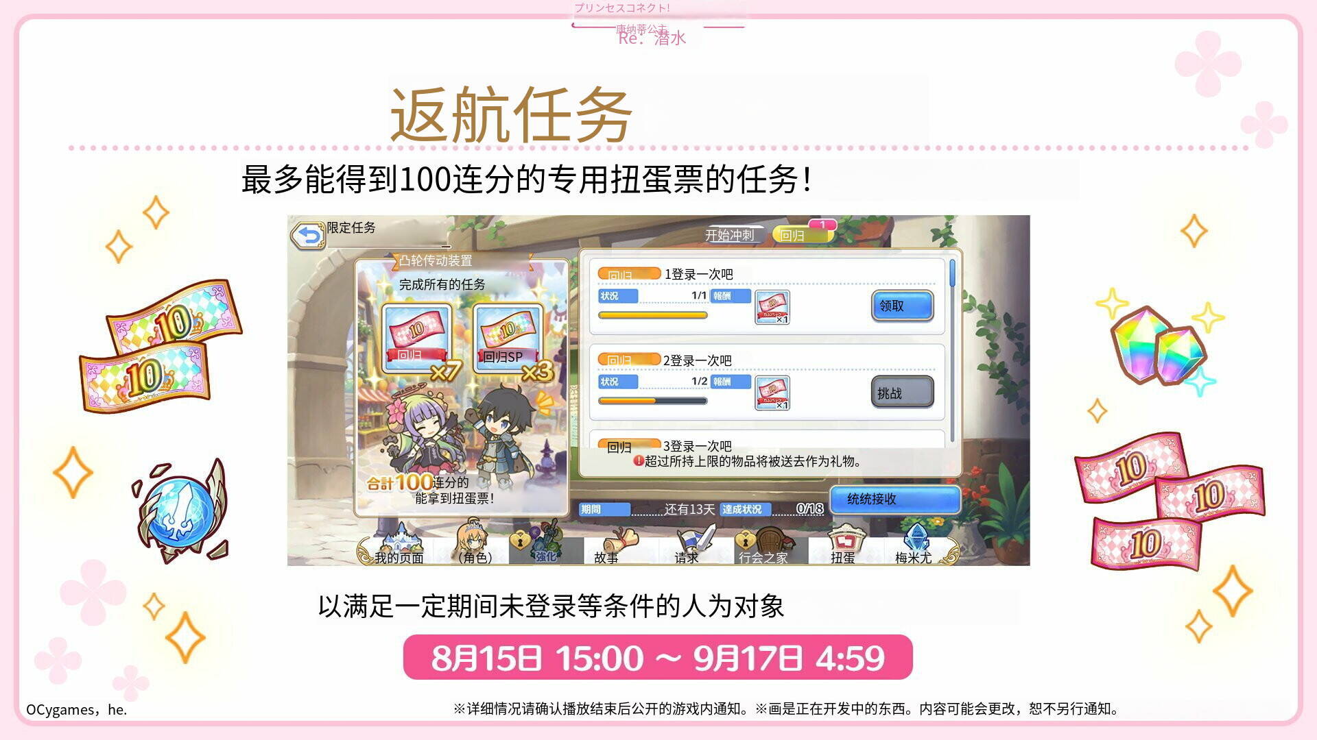 4,90天以上未登录的玩家,可获得10张10连卷!