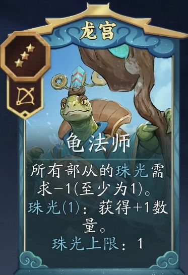 2.龟法师虽然难以培养数量,但是阵容的核心,并且越多越好(只玩虾兵需要一个,玩蛤蟆需要四张到极限,玩螃蟹需要越多越好),不亚于龙王的地位