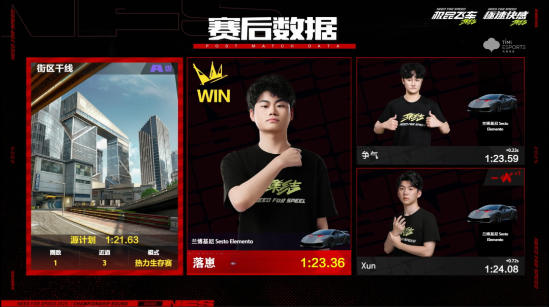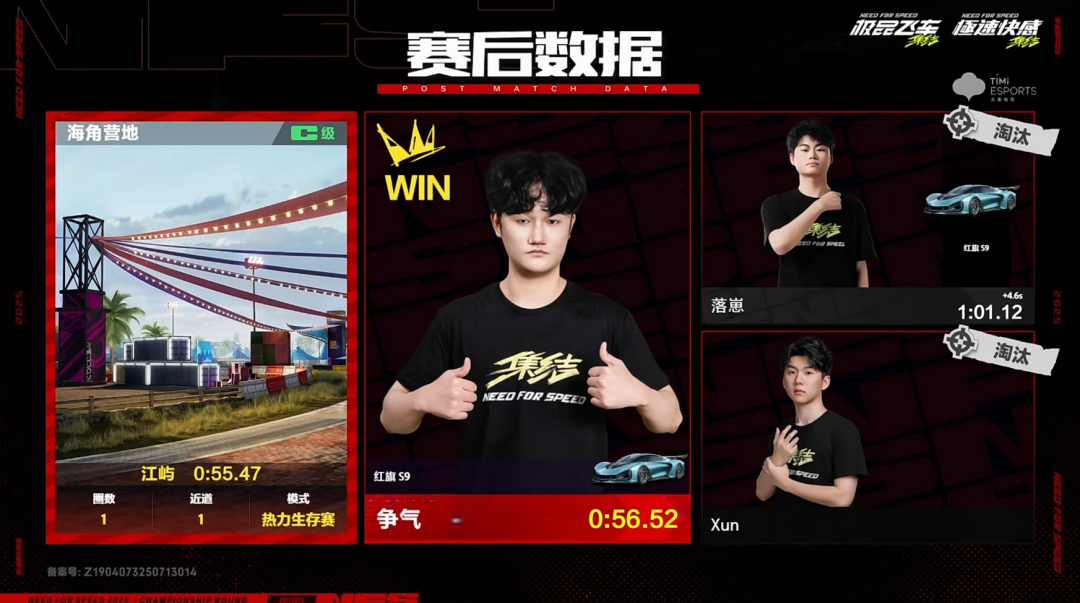 新人小将Xun心态平稳、操作稳健,而争气与落崽同样状态火热、毫不示弱。三位顶尖车手在赛道上频频交锋,激烈对抗与贴身缠斗不断上演,比赛再度陷入焦灼鏖战。