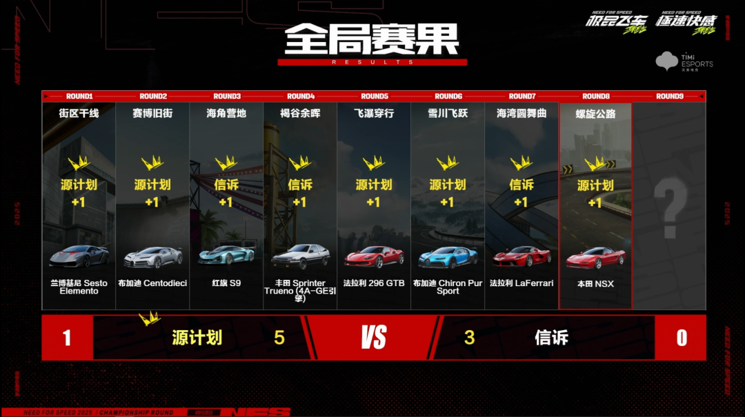 最后的决战地点在卡门大桥。首圈交锋,信诉悍然发起进攻,一度强势反超源计划点燃全场。然而在攻防转换间,源计划展现出恐怖的细节掌控力,操作滴水不漏。第二圈全程压制领跑,未给对手任何机会。