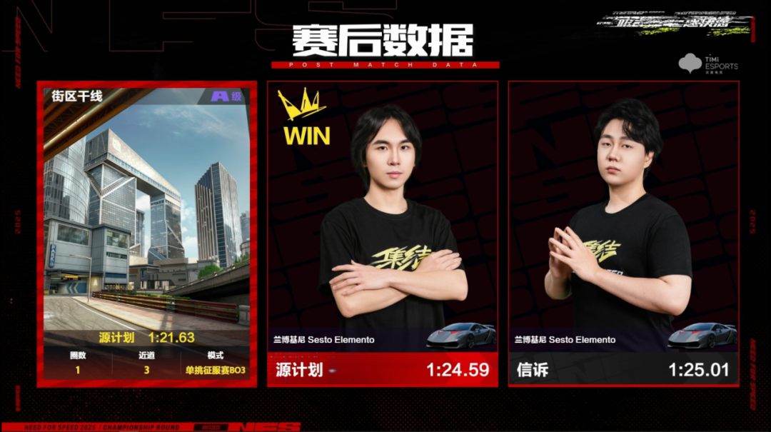 首图街区干线便火花四溅,开局交锋中源计划率先出现失误,却依旧靠着极限的贴墙过弯惊险拿下第一。信诉吸住尾流频繁“肘击”,可惜最终未能撼动对手,遗憾失掉首分。