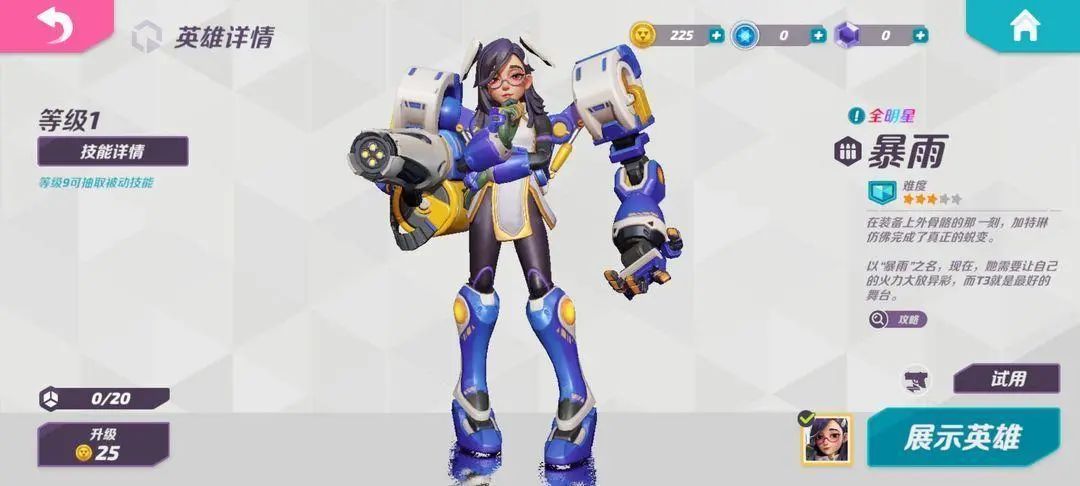 暴雨那也可以练,毕竟谁不喜欢一秒20发的加特林,开启一技能还有减伤,二技能能增强输出能力,大招还能原地生成个球体屏障保护自己,除了移速慢不灵活,现在的暴雨当是最好的选择。