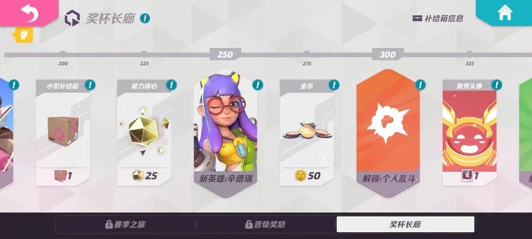 被动在奖杯达到1000杯可以在奖杯长廊领取英雄