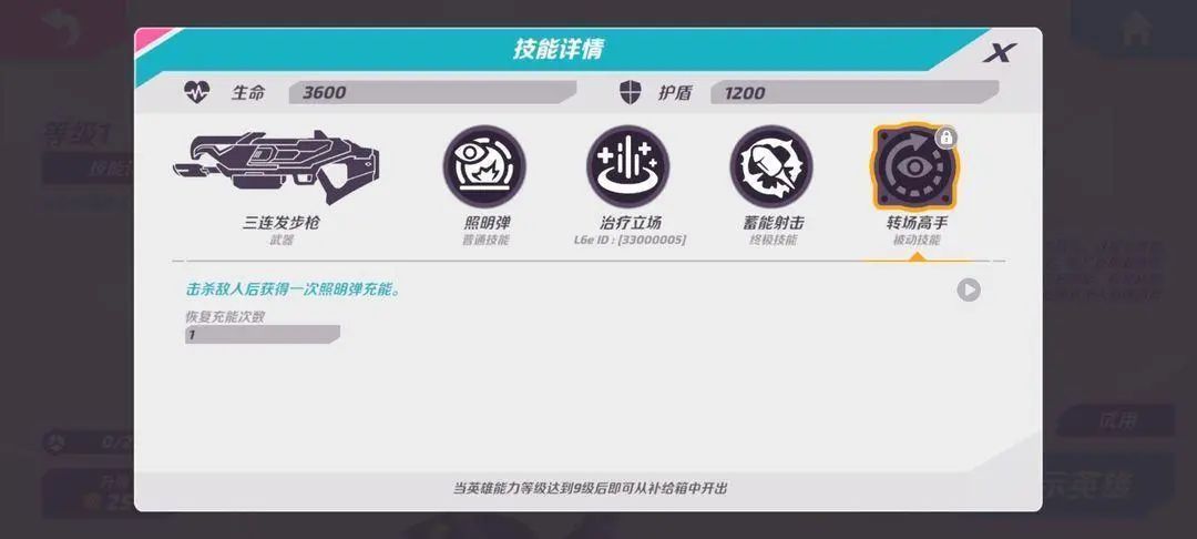 大招●被动则是击杀敌人回复一个一技能的照明弹。