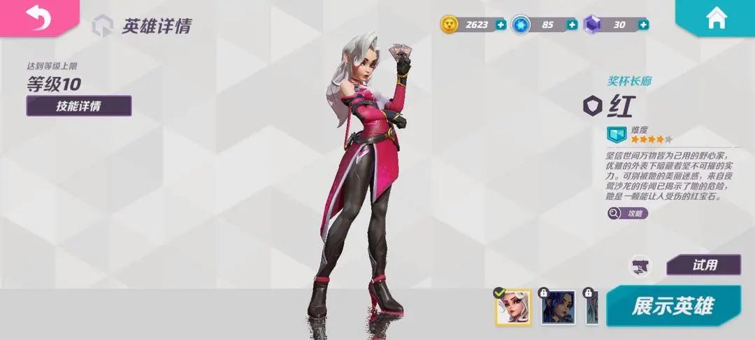 红,这个英雄也很简单又强。一技能释放时生成向前移动的三个盾,能阻挡火力,同时红自身贴脸输出不低,二技能和大招的伤害都不错。