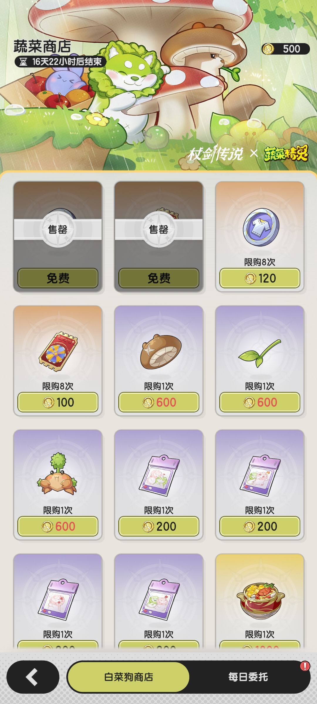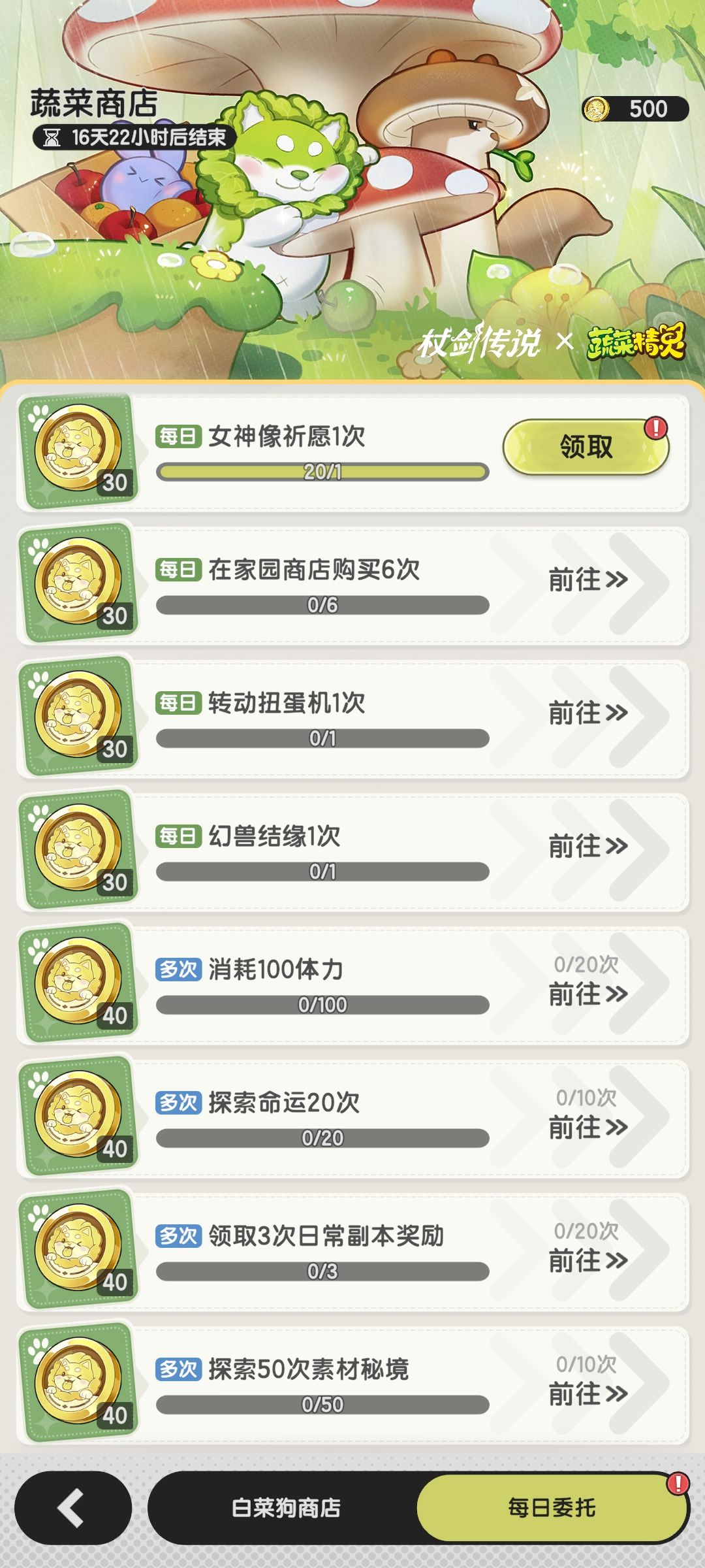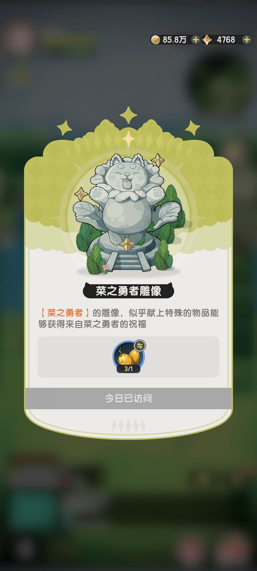 每日登录的签到,连连看新玩法,菜狗石像献上食材,获得料理,白嫖大概率能有一只。