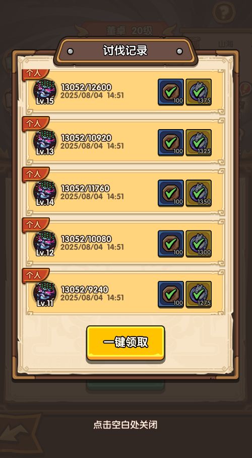 4、讨伐完毕后,可在讨伐记录中查看讨伐信息并领取讨伐奖励或参与征召奖励。