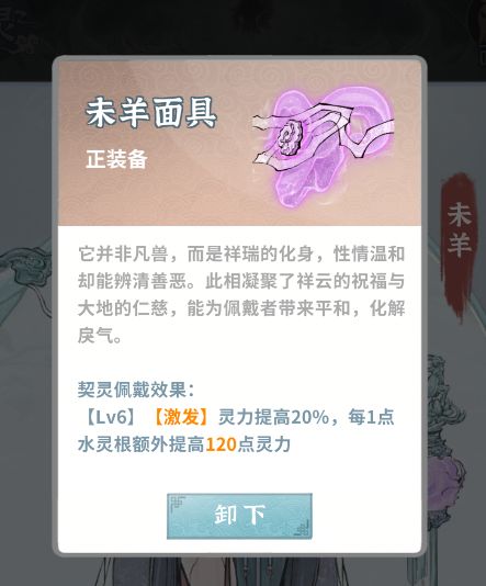 点击契灵后可查看详情,契灵可装备契灵面具。