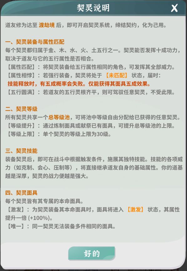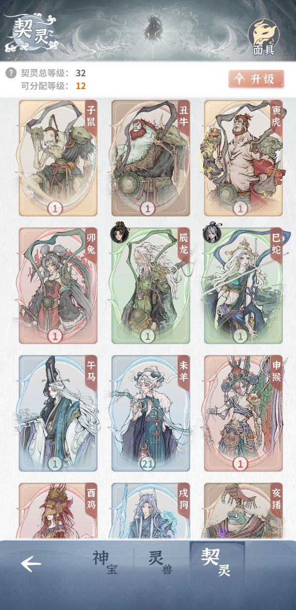 契灵系统在主线来到归龙关,击败六丁六甲大阵阵眼后开启,当前版本开放首批12个契灵(对应十二阵眼)。