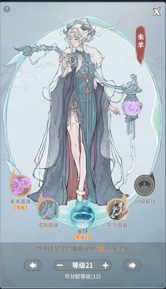 角色可在灵根页面切换到契灵页面,缔结契灵。