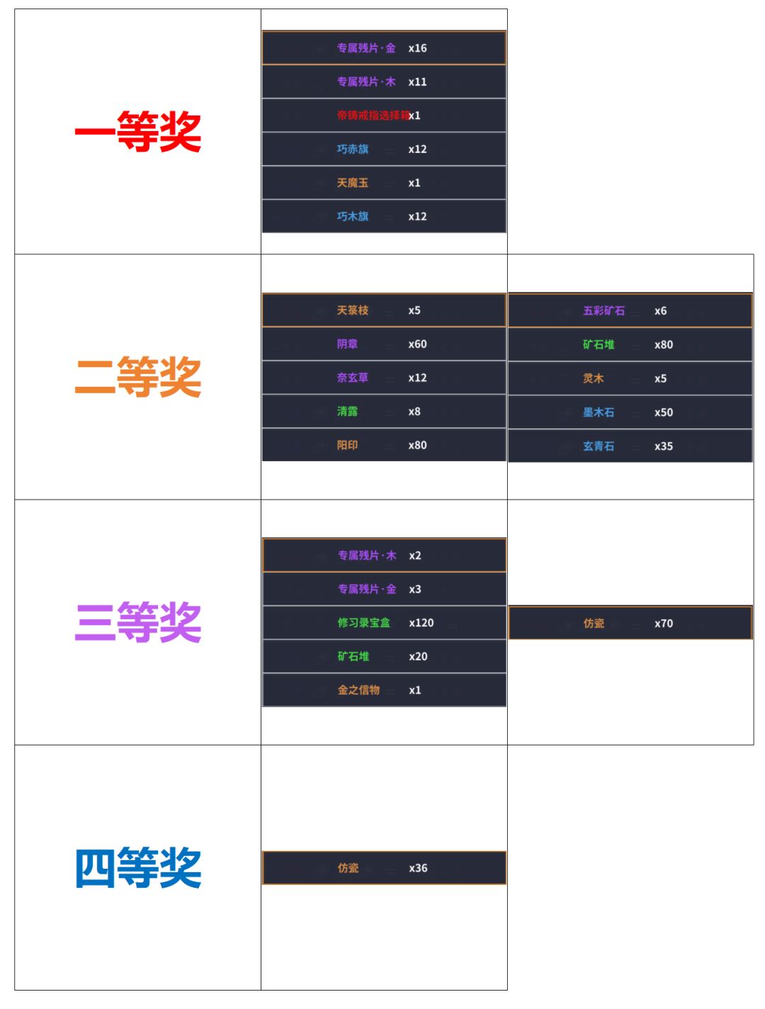 仿瓷则为活动期间可兑换成奖励的代币(活动过了就清空,不可存到下一期)