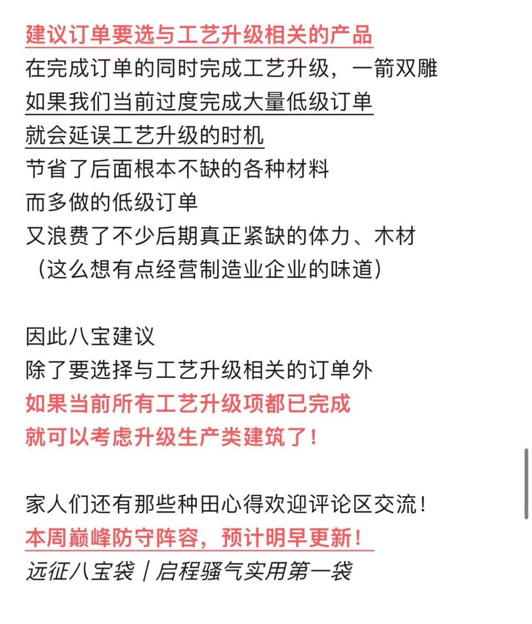 【八宝农研】最新工艺推荐清单&后续升级前瞻规划