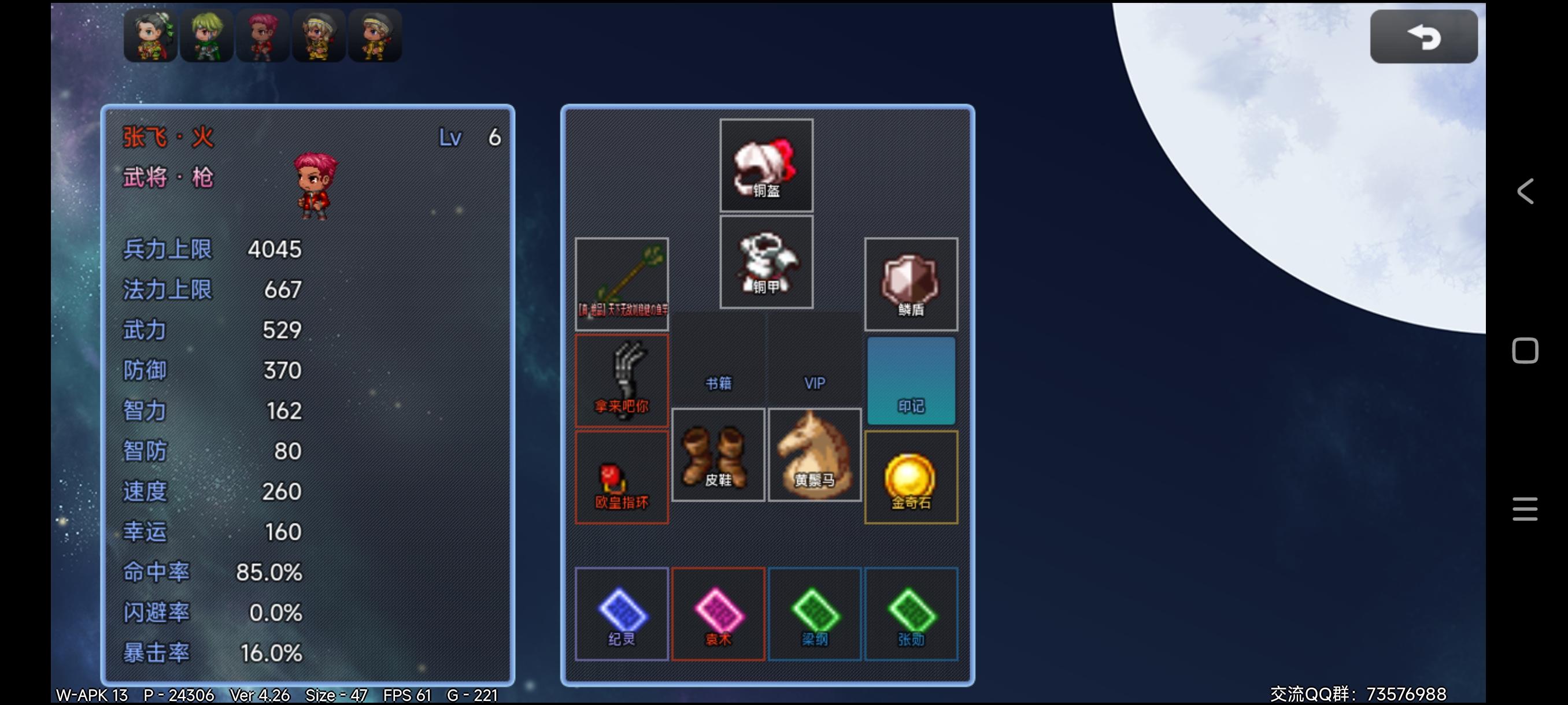 记得打败袁术后不要急着回城,先在洞内多发育下打点人物卡片(可合成别卖)多余装备了可回城卖钱,如下图回城朱灵、路昭离队(记得先把这俩装备都下了)