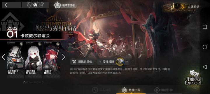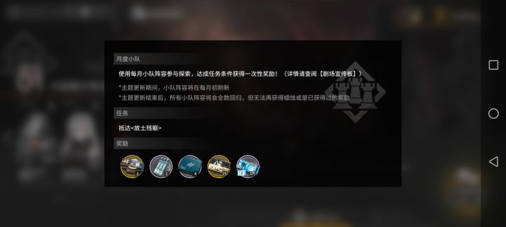 萌新分享一个,培养干员的经验书和金币和芯片的方法。界园玩累了,可以去其它肉鸽里面随便打一局。打完了以后就可以开启游客分队。用系统设置好的干员。再加上助力,你打到第3层,就可以送掉,完成任务