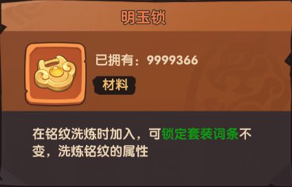 - 用途:洗炼时锁定套装词条(保留套装效果)。