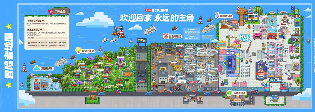 活动设计诚意满满。玩家可自选五大身份角色,探索覆盖整座岛屿的50多个冒险打卡点,收集徽章。完成3个任务即可获得“金色徽章”认证。