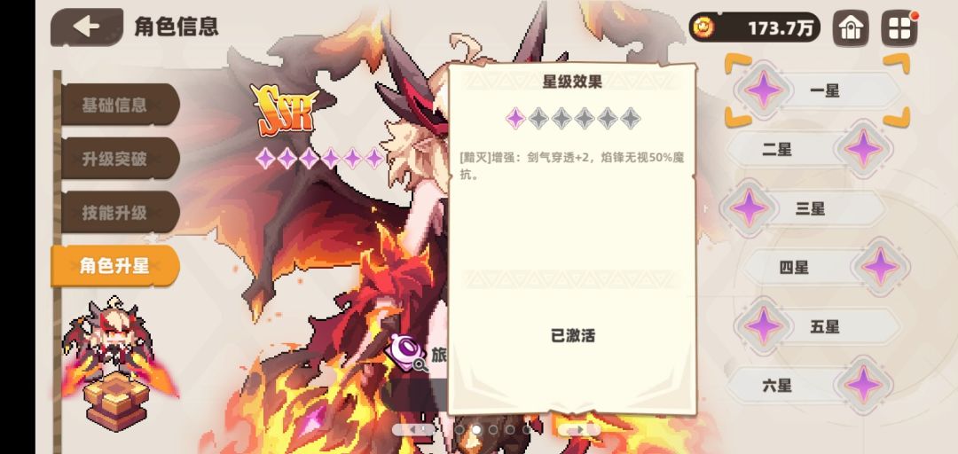 注:1星和6星都为加强角色自身效果。