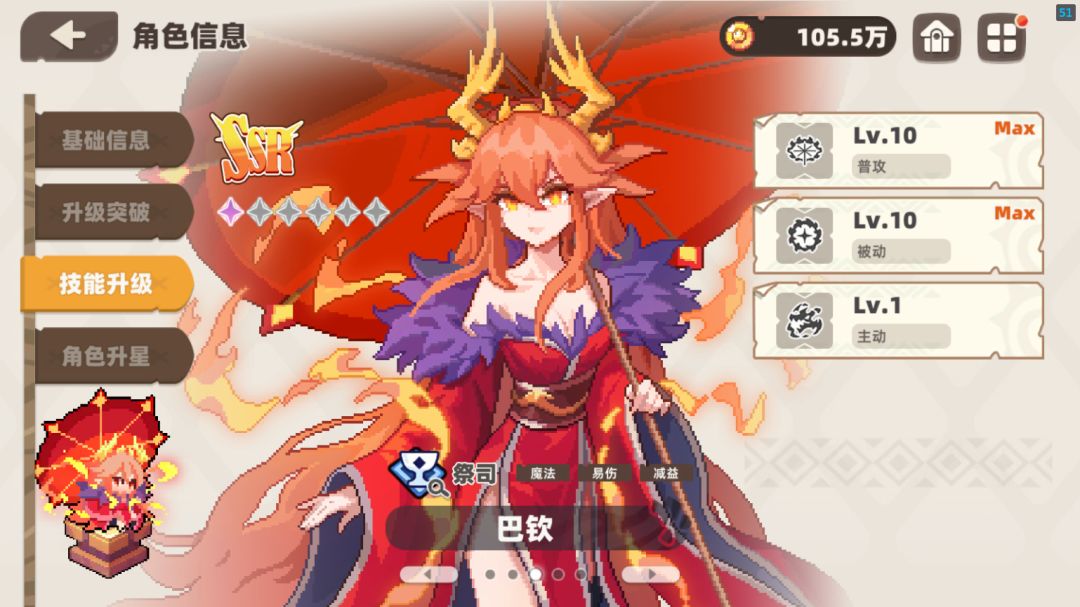 巴钦:辅助角色,普攻被动点满,被动可以降低怪物的魔抗。