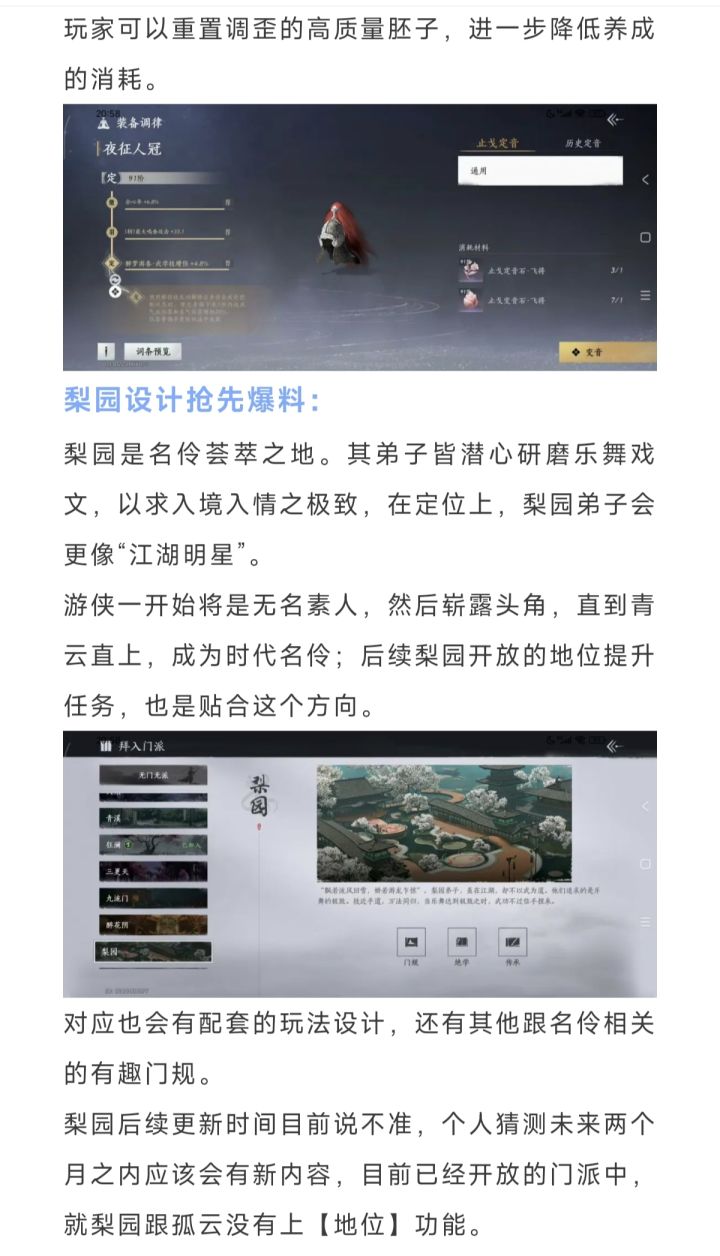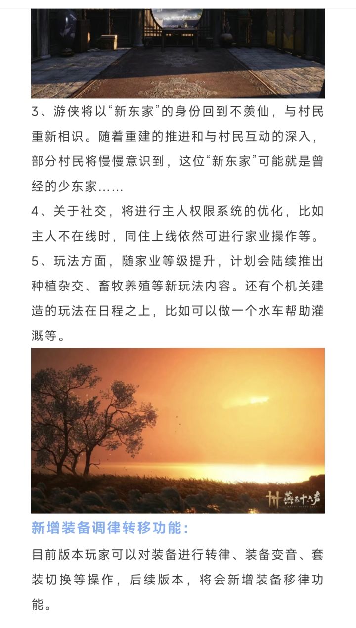 燕云十六声9月开放等级上限100级?梨园设计抢先爆料,新增装备调律转移功能,家业重置做内容合集