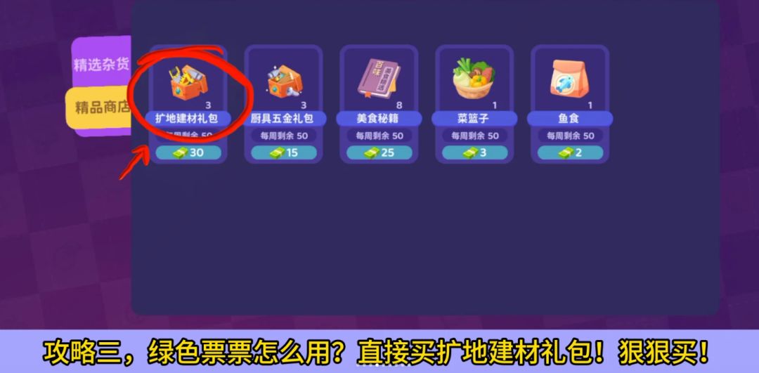 3.攻略三,绿色票票怎么用?直接买扩地建材礼包!狠狠买!!真的!很缺!扩地素材的!!