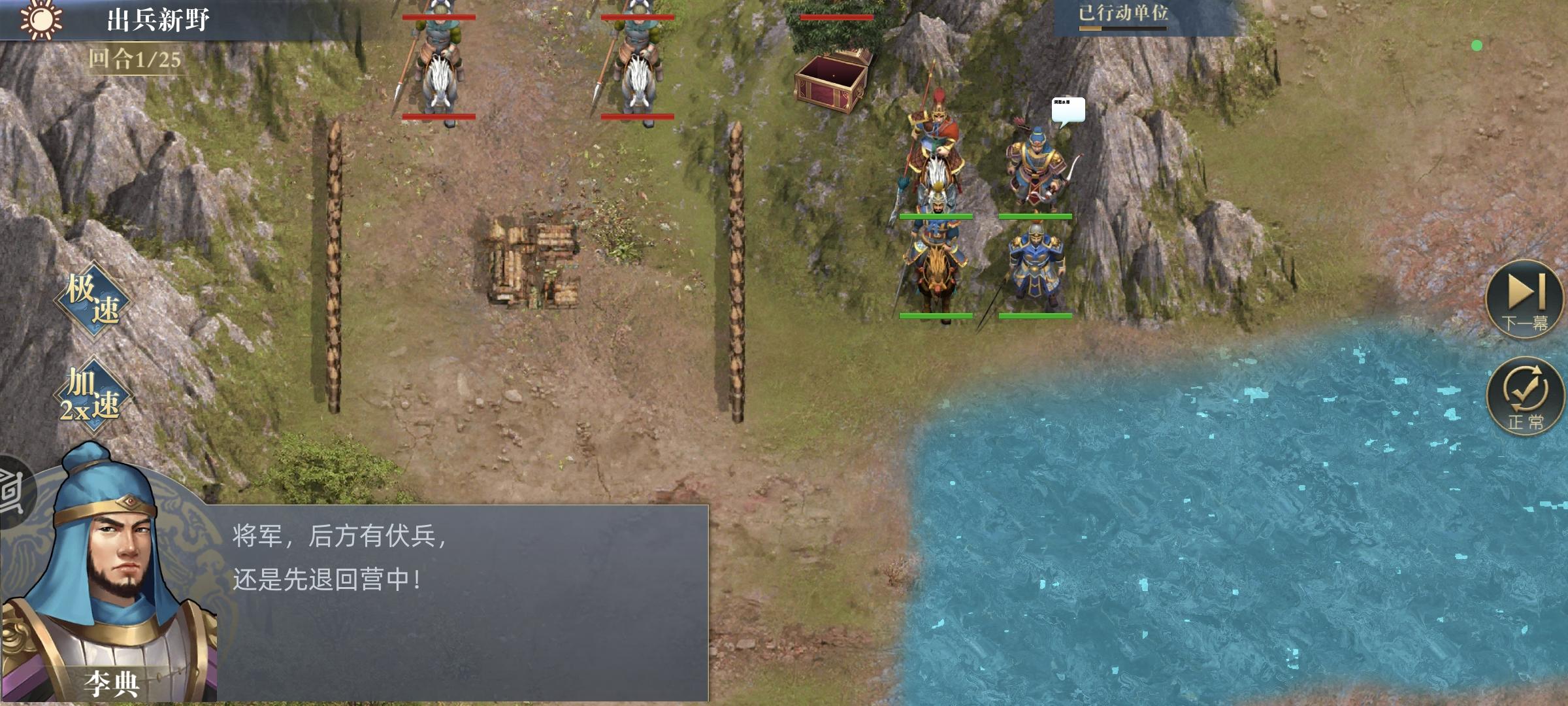 李典于禁下来,靠右边点触发伏兵。