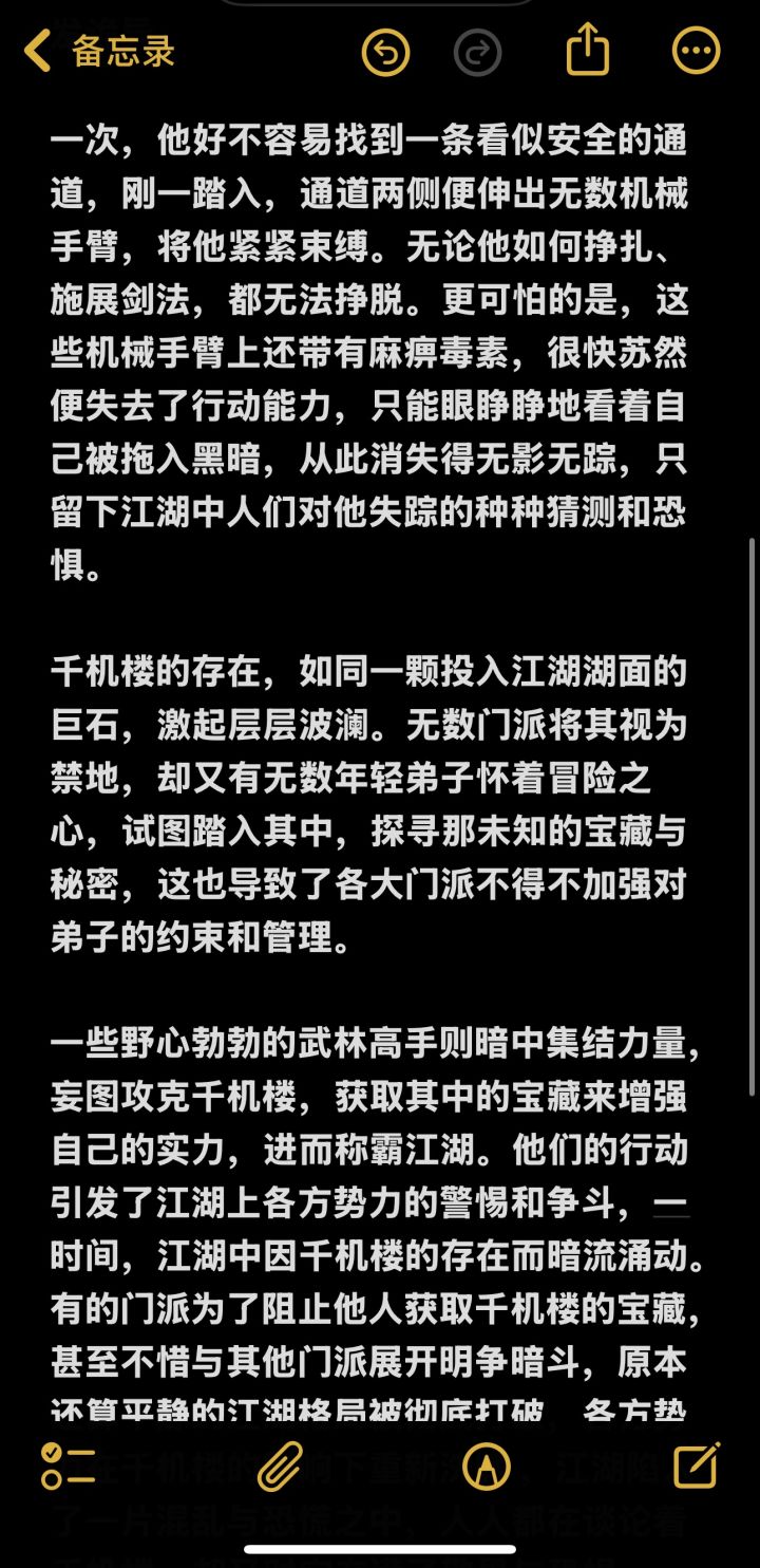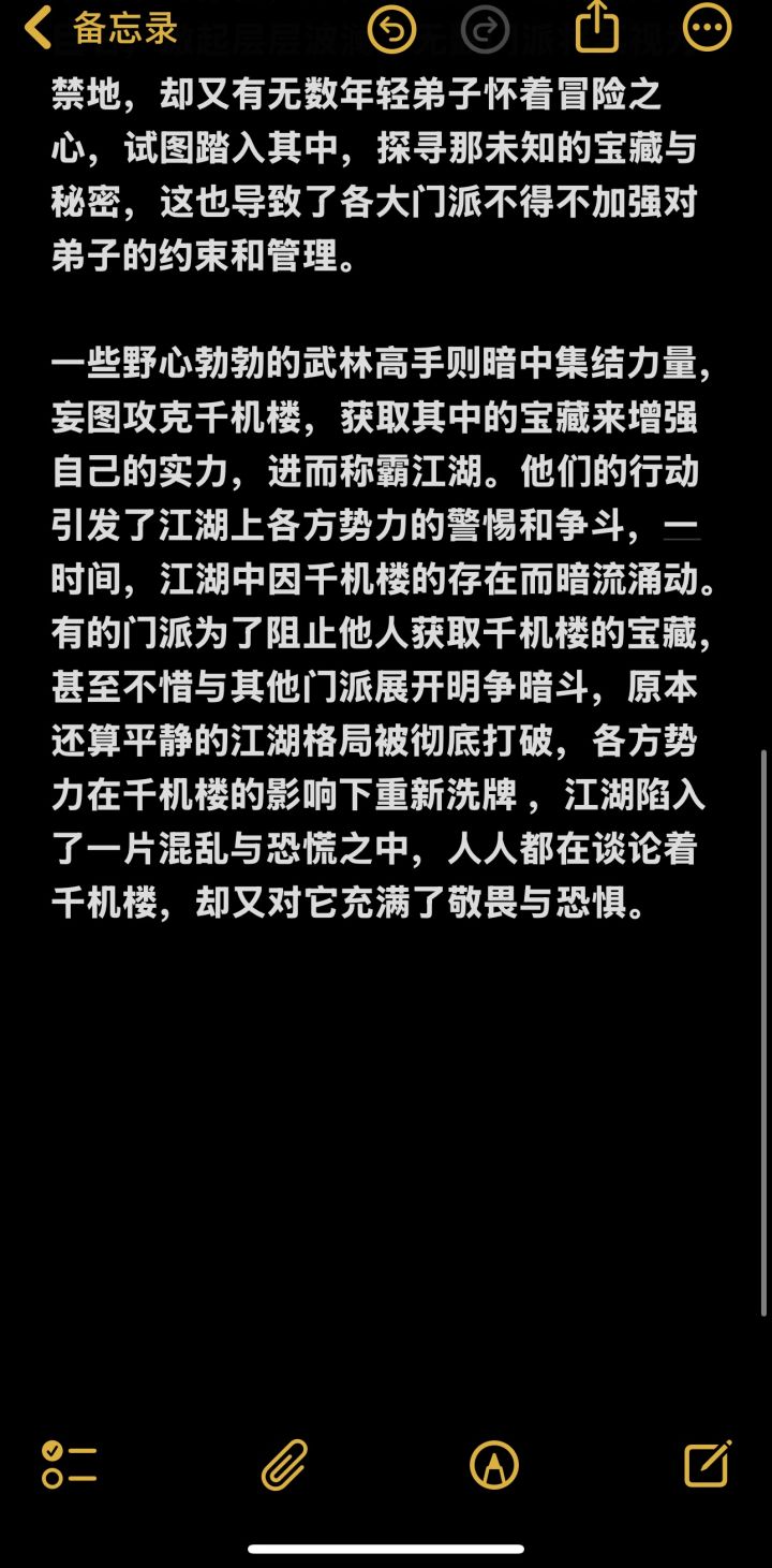 一些野心勃勃的武林高手则暗中集结力量,妄图攻克千机楼,获取其中的宝藏来增强自己的实力,进而称霸江湖。他们的行动引发了江湖上各方势力的警惕和争斗,一时间,江湖中因千机楼的存在而暗流涌动。有的门派为了阻止他人获取千机楼的宝藏,甚至不惜与其他门派展开明争暗斗,原本还算平静的江湖格局被彻底打破,各方势力在千机楼的影响下重新洗牌 ,江湖陷入了一片混乱与恐慌之中,人人都在谈论着千机楼,却又对它充满了敬畏与恐惧。