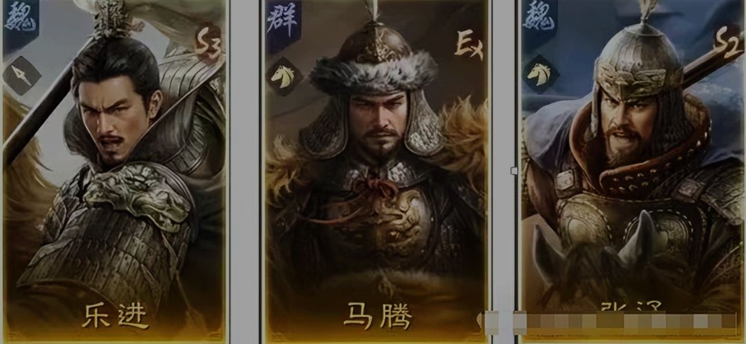 第四队是乐进 + 马腾 + 张辽(赌脸菜刀队),前期T0级,35%发动率万军赌脸,高红限定。乐进技能配置为无难之志 + 战八方,全速,带【兵教 + 先勇 + 敌勇】;马腾技能配置为挫锐折锋 + 舍生取义,全统,带【铁骑雄韬 + 兵令 + 备战】;张辽技能配置为铁骑横冲/兵贵神速 + 万军辟易,全武,带【奇战 + 久战 + 作战】,阵型用偃月阵,但受限于万军发动率,不稳定,仅适合前期使用。