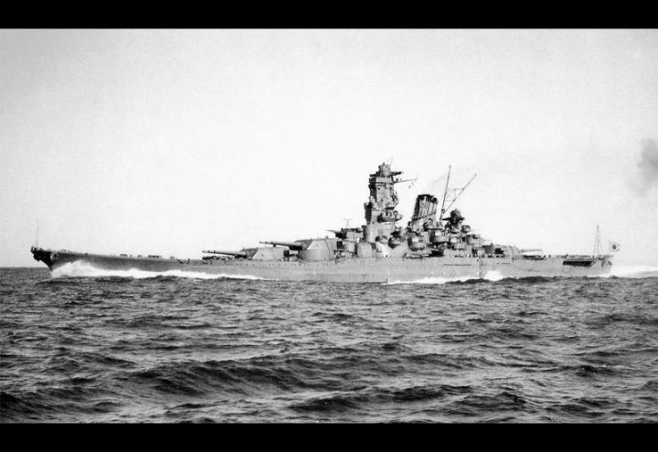 大和级大和号战列舰,全长244.14米,宽36.88米,吃水深度10.97米,满载排水量72800吨。由12台Kampon锅炉为驱动4个叶片螺旋桨的4轴齿轮蒸汽轮机供电,可产生15w马力,最快速度27节,最大航程6210海里