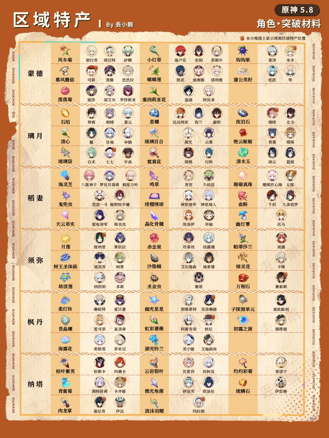 方法:米游社 - 旅行工具 - 大地图 - 筛选标点 - 区域特产