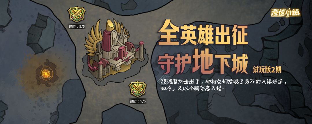 如果你的小镇已经抵御完成了28波魔入侵,在大地图上原入侵的位置,将会开启地下城通道。进入地下城即可参与试玩活动啦。未达到活动参与门槛的玩家可在本帖评论区为老玩家们发送祝福语进行加油打气,可获得相应的奖励。
