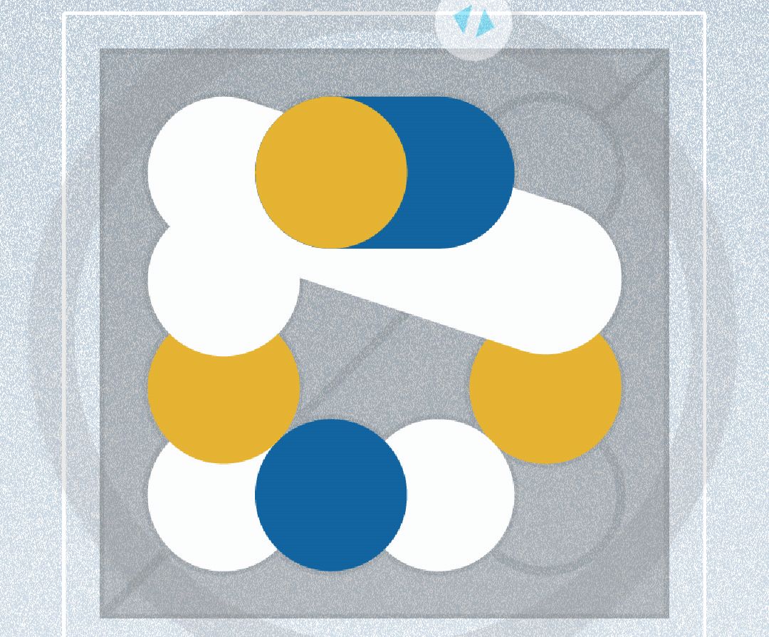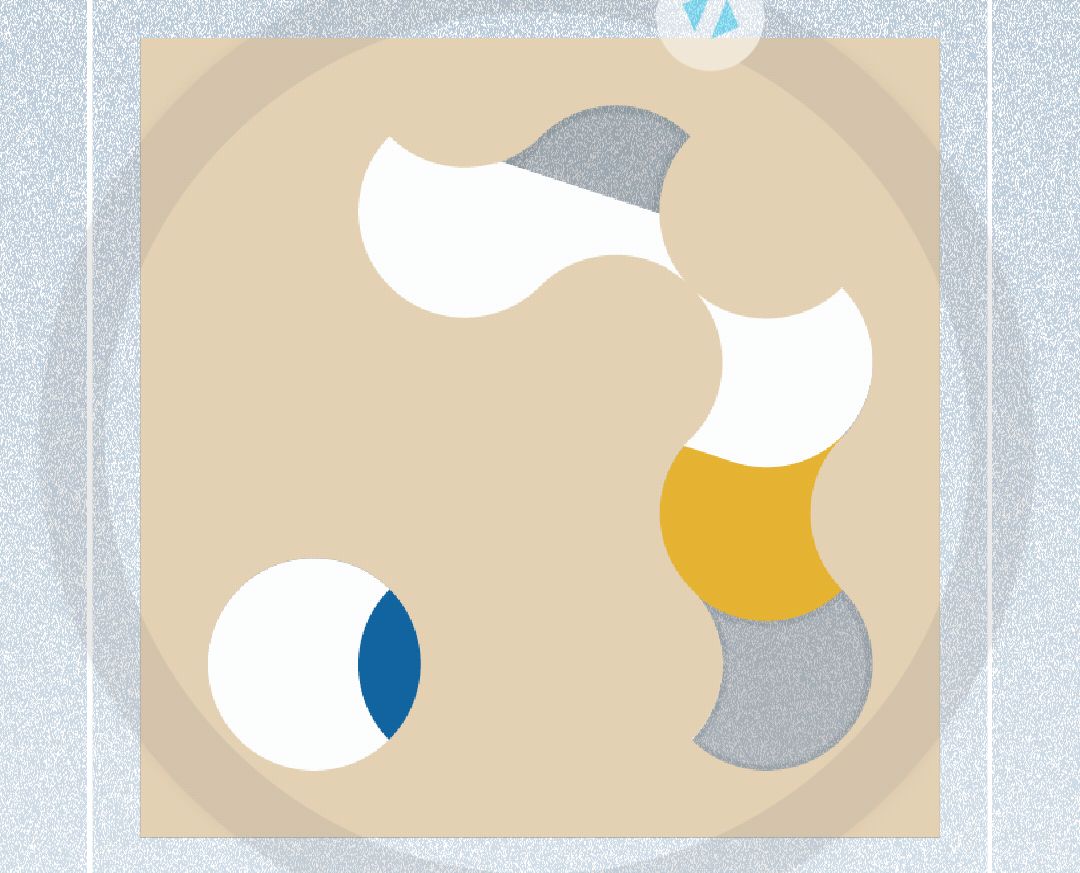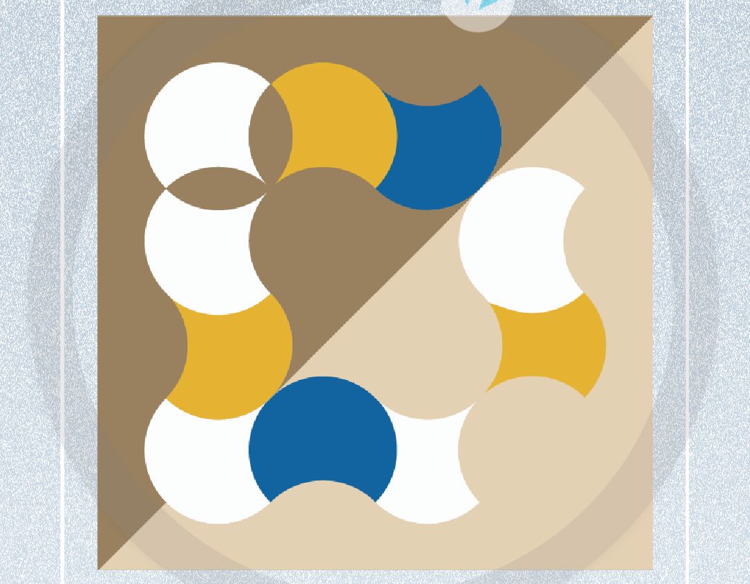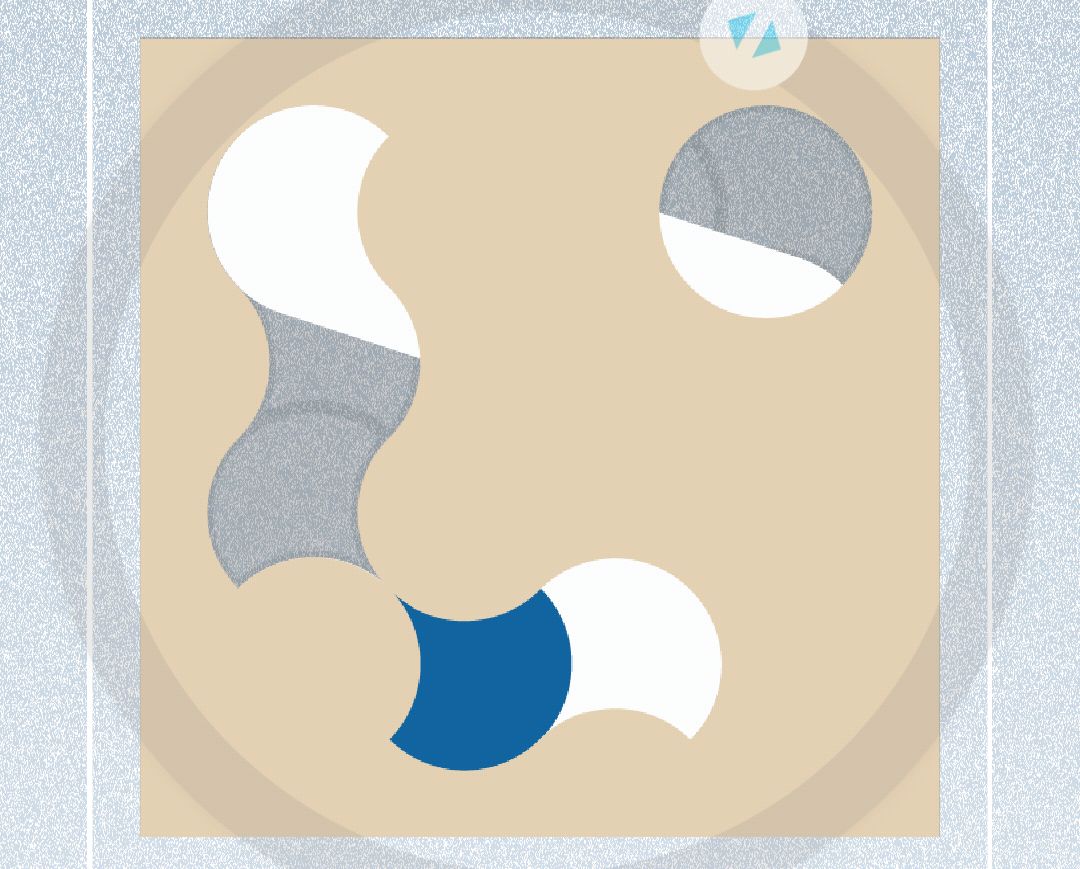注意到图片中出现很多叶状图形。从给出的零件看,这些地方只能是圆形与伞形的叠加。叶状图形的颜色取决于下方圆形的颜色。