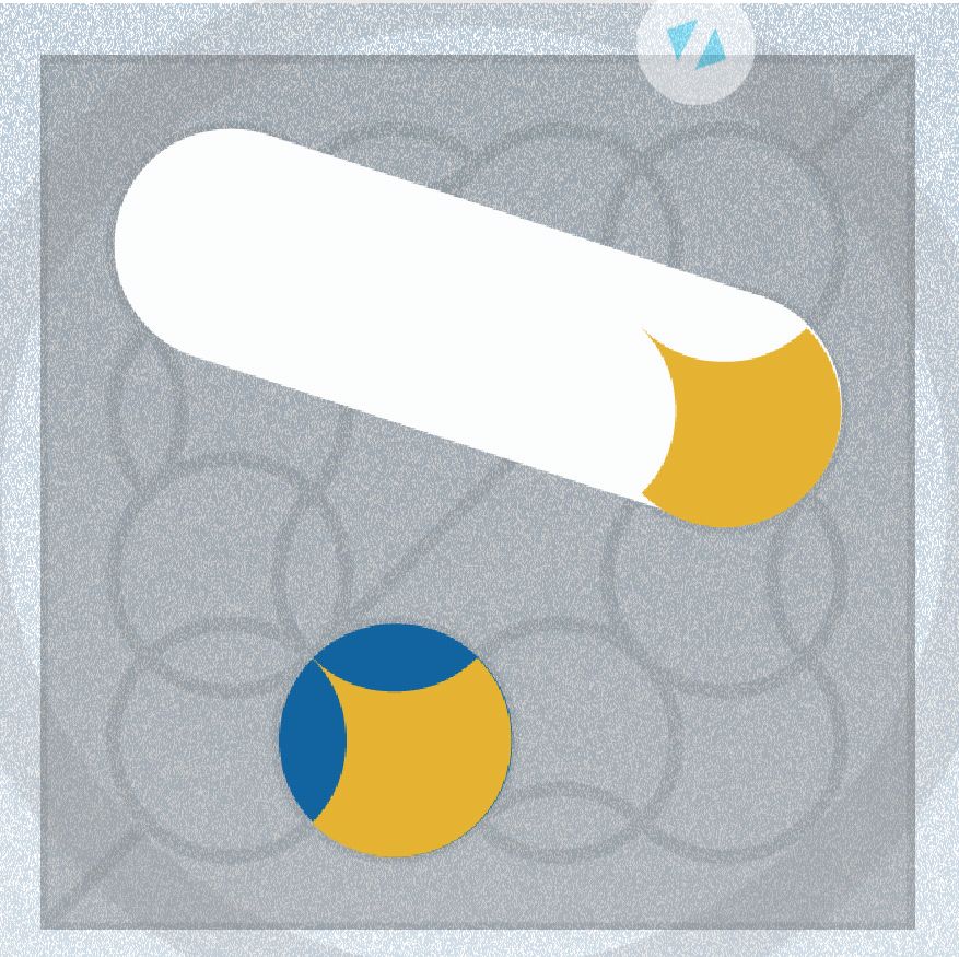 左下角蓝色圆形与黄色伞形叠加形成蓝色叶状图形
