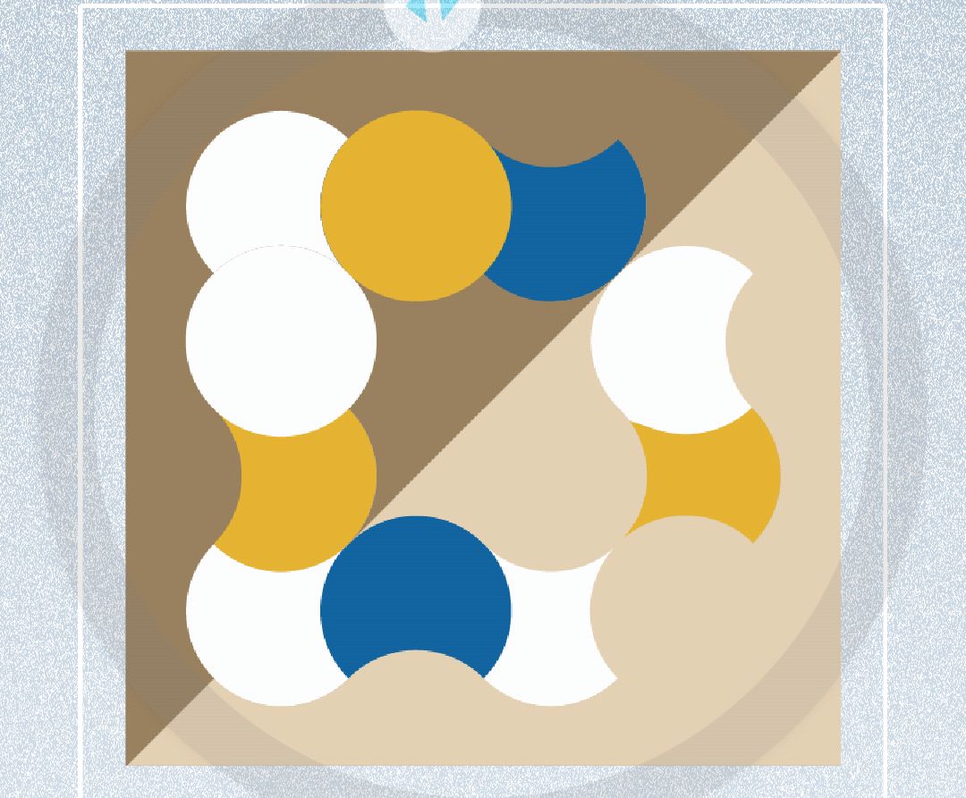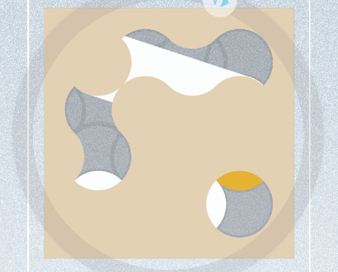 根据观察得到的结果,不管两片大隔板,先将带圆形的图形按照例图中的前后叠加关系放好。
