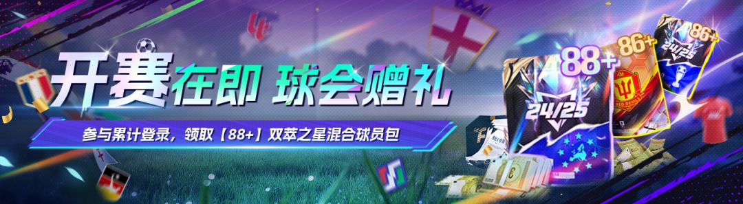累计登录14天即可获得【88+】双萃之星混合球员包奖励!本活动需要完成【新秀5日登录礼】或者【新秀专属签到】后解锁。