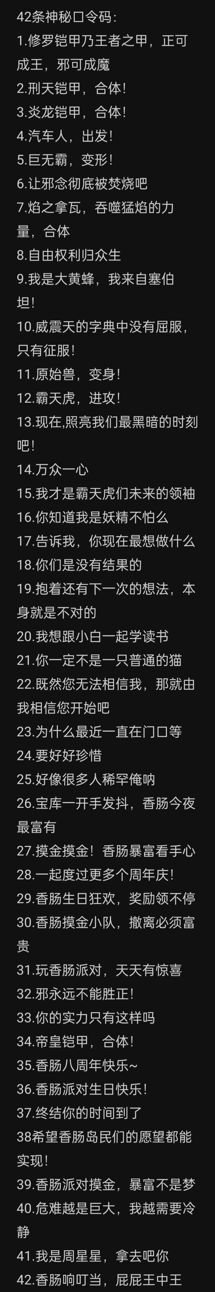 以下是部分香肠派对八周年庆隐藏口令 :
