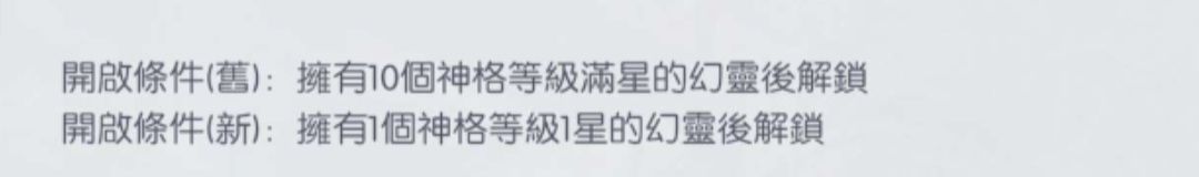 台服降低了开放门槛,只需要有一个解锁了神格一(只需要完成任务七天解锁无需本体)就可以开启这个功能。