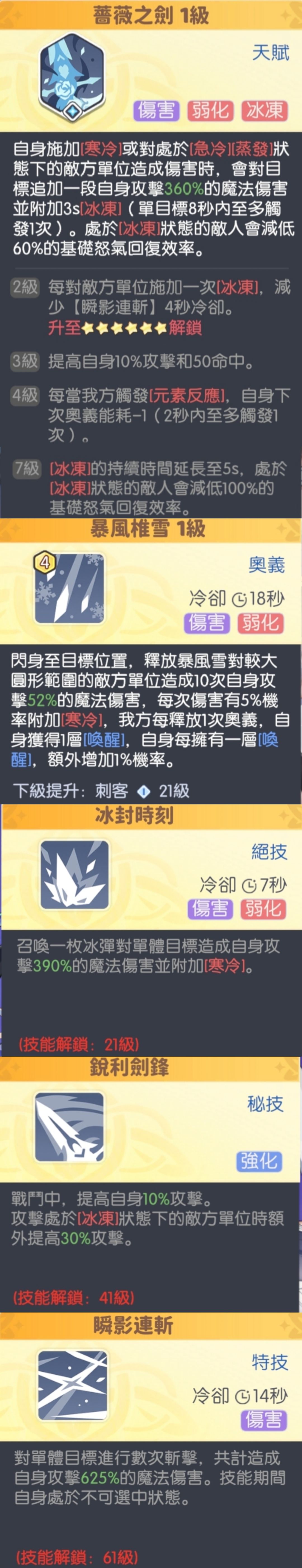 控制系刺客,每次挂寒冷或攻击处于蒸发/急冷状态下敌人时可以冰冻敌方三秒。