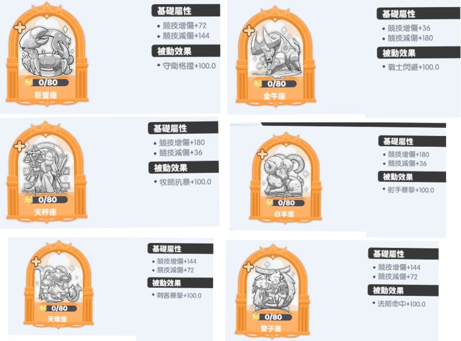 新增魔物:白羊座、金牛座、双子座、巨蟹座、天秤座、天蝎座