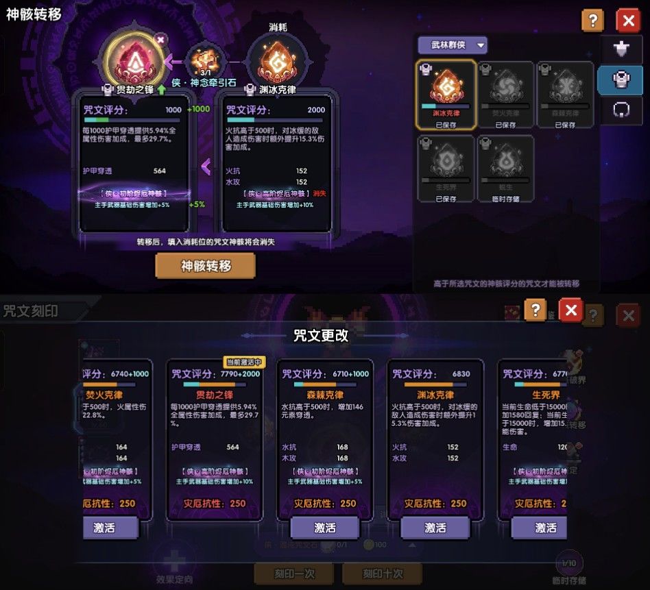 3.牵引石可以等红色咒文石出以后 将橙色咒文石的升灵进度转移过去