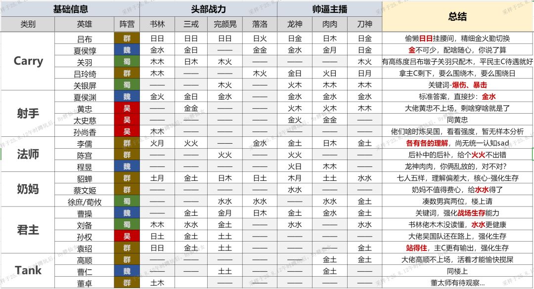 3、关于奶妈、君主、主坦思路星符思路大家较为一致(详见图),关于无双英雄开发、吴国队各家有各家理解,取样少结论难免有偏颇,仅供参考。