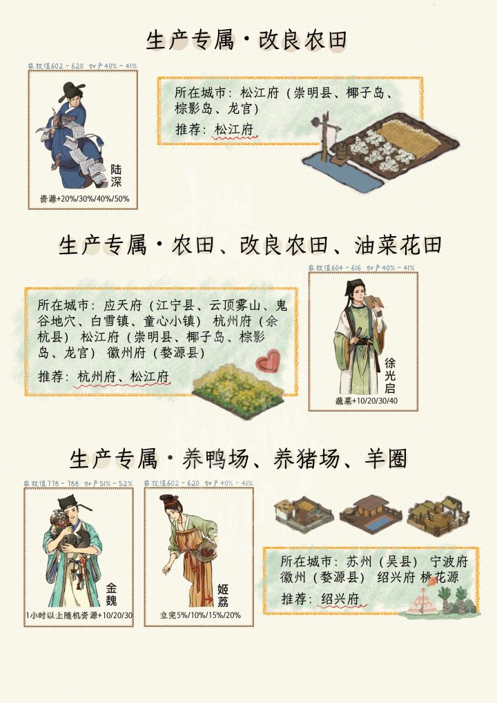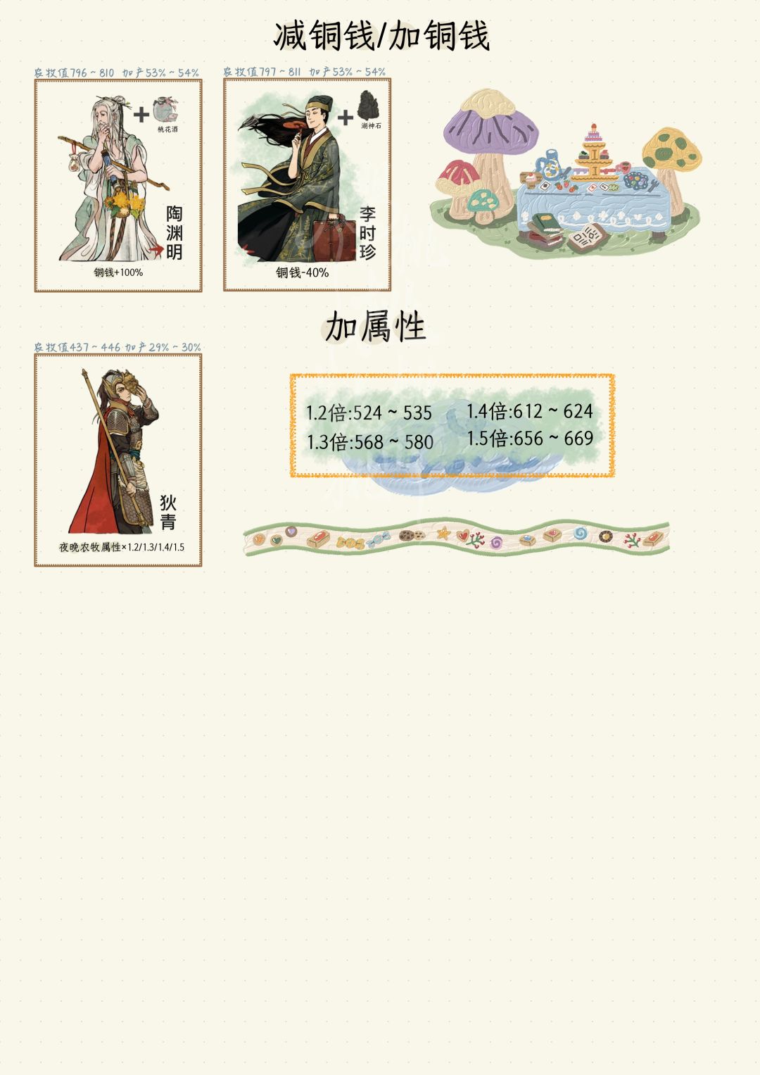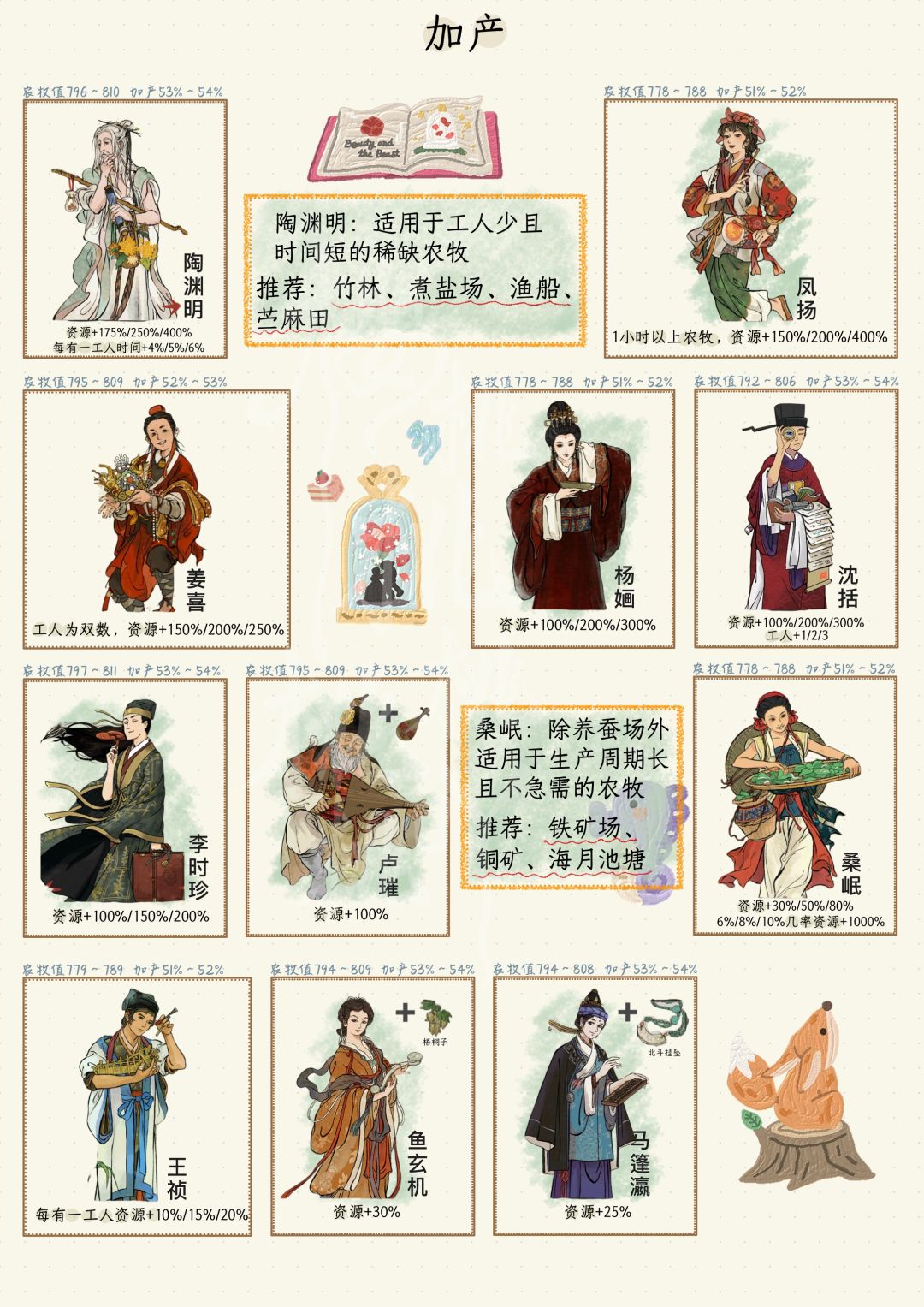 🎲|分类:生产专属、投色槽、加产、减时间、立完率、物品掉落率、加随机资源、减人、加菜肴、加铜钱、加属性数值